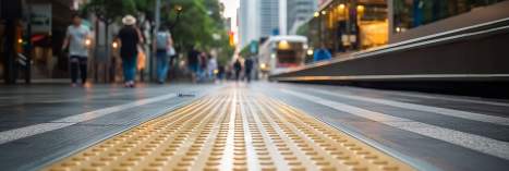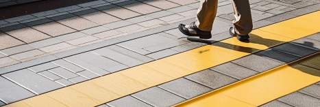 Kontrastreiche Bodenstreifen erhöhen Sicherheit und Sichtbarkeit in öffentlichen Bereichen.